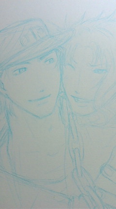 下書きなのに承太郎が既に濃いよ・・・ 難しくって何度も線を書き足すうちにドンドン濃くなる。